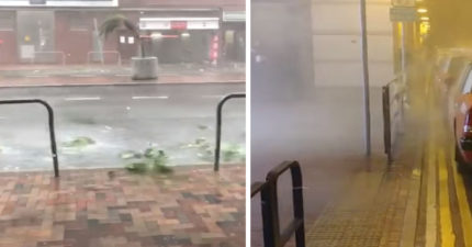 颶風山竹/香港辨公大樓玻璃被吹爆!「滿天文件」被吹到空中:還以為是電影