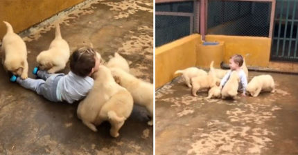 超萌毛球使出「撲倒攻擊」小男孩馬上被淹沒:葛格是我的啦❤