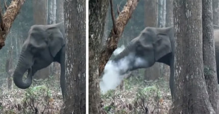 大象被抓到「染上菸癮」一臉憂鬱地噴白煙!「專家這樣說」網大讚:比人類還聰明(影片)
