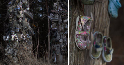 恐怖!男子開車回家驚見「森林掛滿破舊鞋子」超毛嚇壞,網友爆「不是第一次」:從1940年就開始了