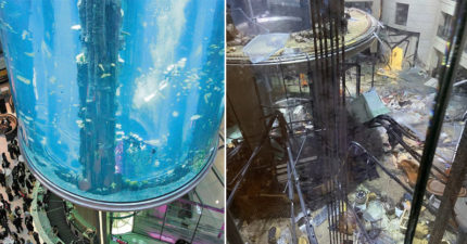 全球最大圓柱水族箱爆裂!1500死魚躺滿街 100萬升海水炸出畫面曝