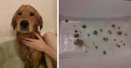 水災後發現被遺棄狗狗「向他搖尾巴」,帶去看獸醫後從毛裡找到「200隻巨型跳蚤」!