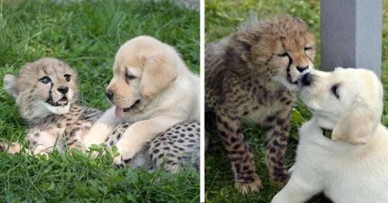 狗不是給他吃的!動物園從小就派拉拉天使跟獵豹作伴,這樣獵豹長大才會有「啪啪啪的自信」。