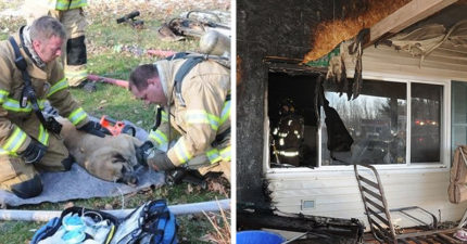 狗狗「戴氧氣面罩」才從火災存活,2個月後「狗狗突然瘋狂舔地板」挖出還活著的兄弟!