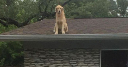 「狗狗被困在屋頂」路人嚇得要報警,但看到「門口告示」後馬上笑瘋!
