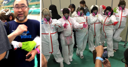 日本偶像團體辦「粉絲擁抱會」都穿著防毒衣不肯碰粉絲,把粉絲當危險細菌作戰成功!