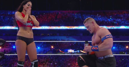 約翰希南在摔角擂台「突然跪下」深情掏出,交往5年女友「忍不住掩臉偷笑」激吻閃爆!(影片)