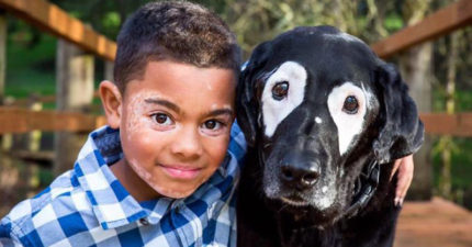 8歲男孩患有「白斑症」超自卑不敢外出,跟「熊貓白眼圈狗狗」成為摯友後找回自信!