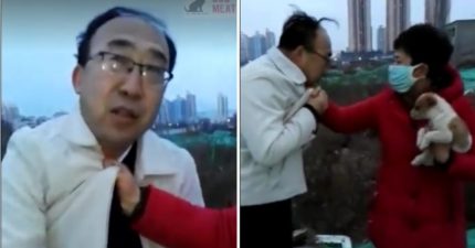 她看到「條碼頭男綁著小狗的腳」準備虐待他,馬上拯救狗狗「痛毆他」!(影片)