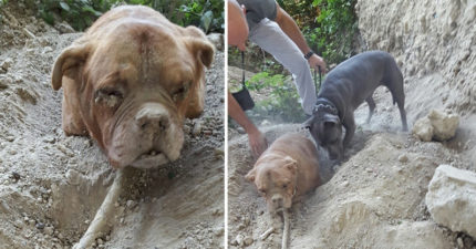 一人一狗拚命挖拯救她!前主人把「脖子綁著裝滿石頭的麻袋」確保她不能逃走!