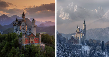 25張美到讓你停止呼吸的「世界名勝下雪前後對比照」!#1《冰雪奇緣》艾莎的城堡!