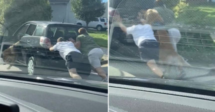 影/車子故障!聰明汪跳車「幫忙一起推」 主人被萌到推不動:白忙了啦