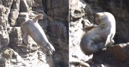 影/紧张小海豹跳下悬崖「身体折成90度」 专家曝「游客恶意真相」网怒:没人性