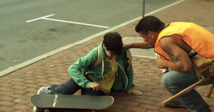 一位小男孩在溜滑板時跌倒了…接下來發生的每件事都會點亮你的心!