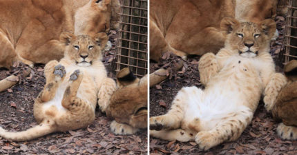 小獅寶寶超萌睡姿!爽到「翻肚子+白眼」呆萌模樣融化網友:真的是大貓❤
