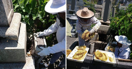 住持發現「大群蜂蜜」從祖墳不停飛出 打開驚見「海量蜂巢」…忍不住嚐一口:好吃!