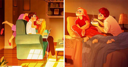 19張「讓你忘光另一半缺點」的浪漫愛情插畫 遠距離最期待「自願熬夜的電話」