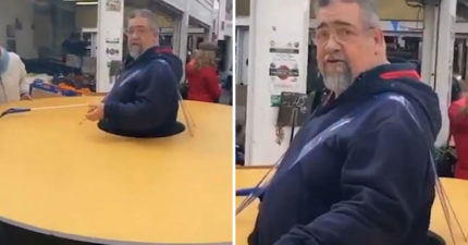 影/義大利人自製「披薩型防疫神器」隨時保持安全距離 驕傲喊:防飛沫懂不!