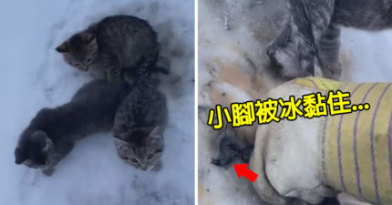 影/浪貓受困雪地「腳被黏住」怎麼拔都沒用 他用「一杯咖啡」成功救援被讚爆!