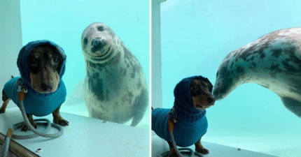 臘腸犬「巧遇海豹」秒變摯友!隔著玻璃「互動20分鐘」網全融化:最可愛閨蜜❤