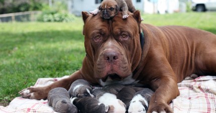 世界最大的76公斤鬥牛犬雖然很可怕,但看他第一次成為狗爸爸後的無奈表情!