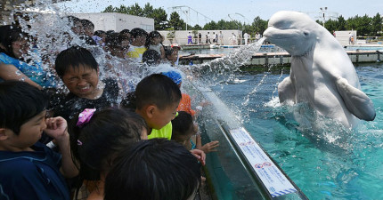 這隻貼心小白鯨懂你真的太熱了,於是浮出水面送上你最需要的「清涼一下」!