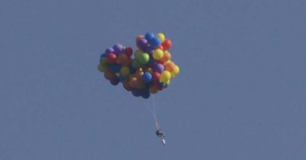 這男人在椅子綁上110顆氣球升空想要引人注目,但卻大大的失敗了…