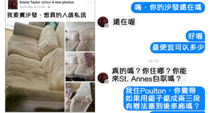 這名男子因為嫌棄賣家的沙發太舊了很不爽,決定跟賣家開一個史上最殘酷的玩笑。