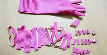 她將「破洞的塑膠手套」剪碎後,沒想到居然能發揮這麼棒的居家妙用!