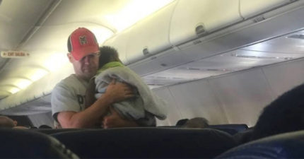這個懷孕的黑人媽媽一上機她的小孩就吵不停,然後一名白人男子起身「抱走她的小孩」…