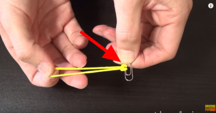 他先用一個橡皮筋把這個迴紋針給綁住,這個超完美用法會讓你終於能夠脫離邋遢生活了!