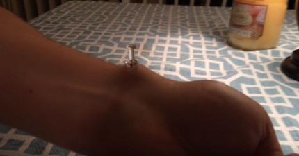 他把圖釘「啵」的一聲敲入他手上的超大囊腫,一開始擠的時候整週的壓力就煙消雲散了。