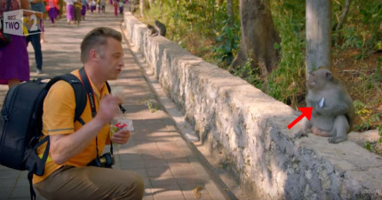 這個男子的手機被猴子偷走後,最後拿回手機的方式讓人驚覺猴子真的是最厲害的「奸商」…