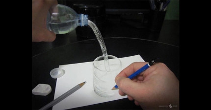 他水倒到紙上的杯子裡時你的腦袋就會當機了。
