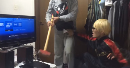 這個小阿宅不務正業每天打狂PS,接著爸爸就直接拿鐵鎚進房間…