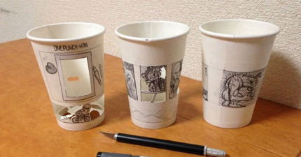 這個男生這樣把3個紙杯畫成這樣,當3個疊在一起轉動時…《一拳超人》粉絲會愛到爆!