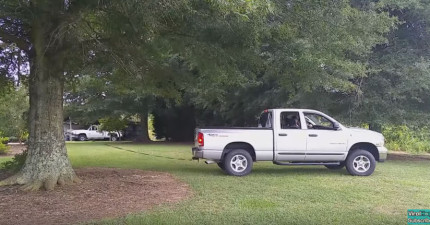 這名男子笨笨的以為他的卡車可以把大樹給拉倒,第25秒讓我眼鏡跌爆笑噴了!