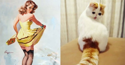 當性感海報女郎對上「姿勢完全一樣可愛貓咪」後,看完後才知道原來貓咪也可以很性感!