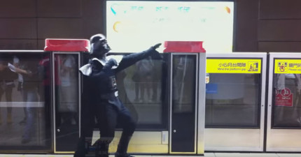 台北捷運站裡也出現了黑武士!他的超強魔力讓捷運順利到站!