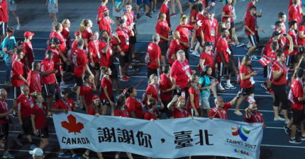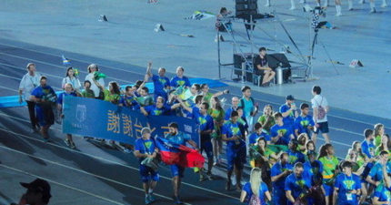 因為台灣隊閉幕不能帶台灣國旗進場,巴西隊超暖拿著台灣國旗「謝謝台北市」全場沸騰!