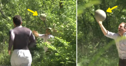 男子抱著超大顆蛋逃跑,前面慢跑者看到後面追出的「媽媽」嚇到腿發軟癱瘓!