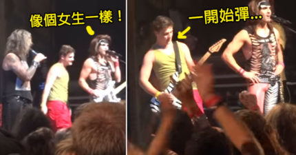 粉丝跑上台被主唱酸「穿得像个女生一样」,粉丝把吉他拿过来开始弹时「全场快跪下了」!