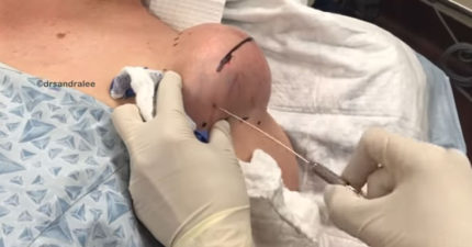 女子身上的「狂大痘痘」大到快活起來了,黃色巨獸擠出來大到「立刻減3公斤」!(影片)