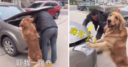 傻狗狗!跳上去想幫爸爸修車差點害死爸爸,爸爸被GG自己被嚇爆還回頭超得意賤笑!(影片)