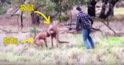 邪恶袋鼠给他爱犬锁喉,他冲上去他跟袋鼠就摆出拳击手姿势「ROUND 1」!