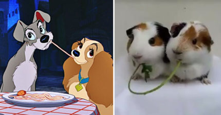 兩隻超萌天竺鼠不小心吃到同一條,最後就只好舌吻了…