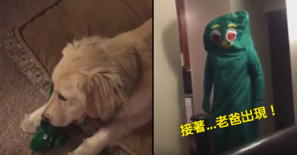 主人打扮成汪汪最喜歡的玩具 牠一轉頭「腦袋當機爆炸!」