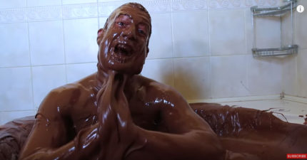 他倒272公斤的巧克力醬進浴缸並且跳進去!極度享受到已經被網友罵爆了!