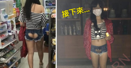 網友拍到辣妹穿「後空愛心褲」逛超商,轉身衣服撩起大家的鼻血噴到暈眩…