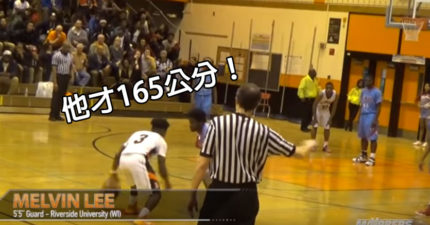 這個小男生才165公分因此對手低估沒守太緊,接著他往前衝就衝過兩個人直接霸氣灌籃!